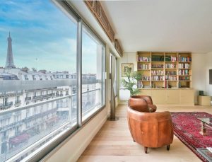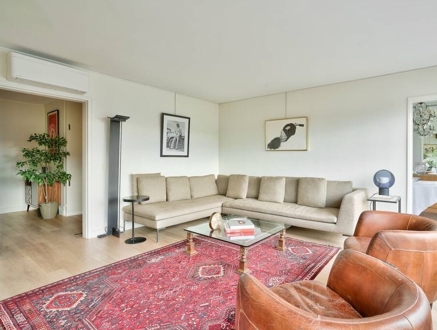 Located near the Trocadero, on the prestigious Avenue Kléber, this apartment enjoys an ideal location, close to shops and public transport. It is situated on the seventh floor of a luxury building with an elevator and concierge. With a surface area of 107 sqm, this apartment offers unobstructed views of the Eiffel Tower and the rooftops of Paris. It comprises a spacious entrance hall with a large walk-in closet, a large living room, a fully equipped kitchen with a dining area, two suites with walk-in closets and bathrooms, one of which opens onto a beautiful, quiet garden, and a laundry room. The apartment, in perfect condition, is fully air-conditioned. A cellar and a parking space are available at an additional cost. Condominium. Fees included, payable by the seller. Monthly charges: EUR765. Information on the risks to which this property is exposed is available on the Géorisques website: www.georisques.gouv.fr