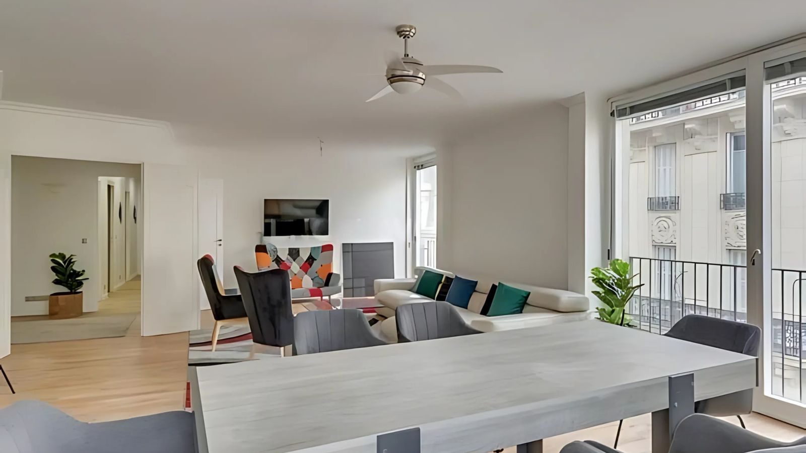 This 145 m² apartment is composed as follows: a bright living room with a balcony offering a view of the Arc de Triomphe, a separate fitted and equipped kitchen, three bedrooms with the possibility of a fourth, a bathroom, a shower room, and two separate toilets. A cellar completes this property.