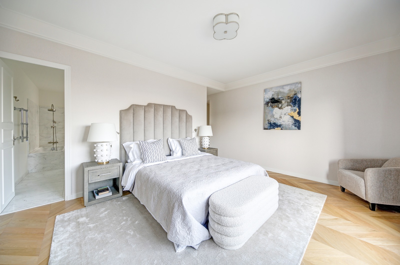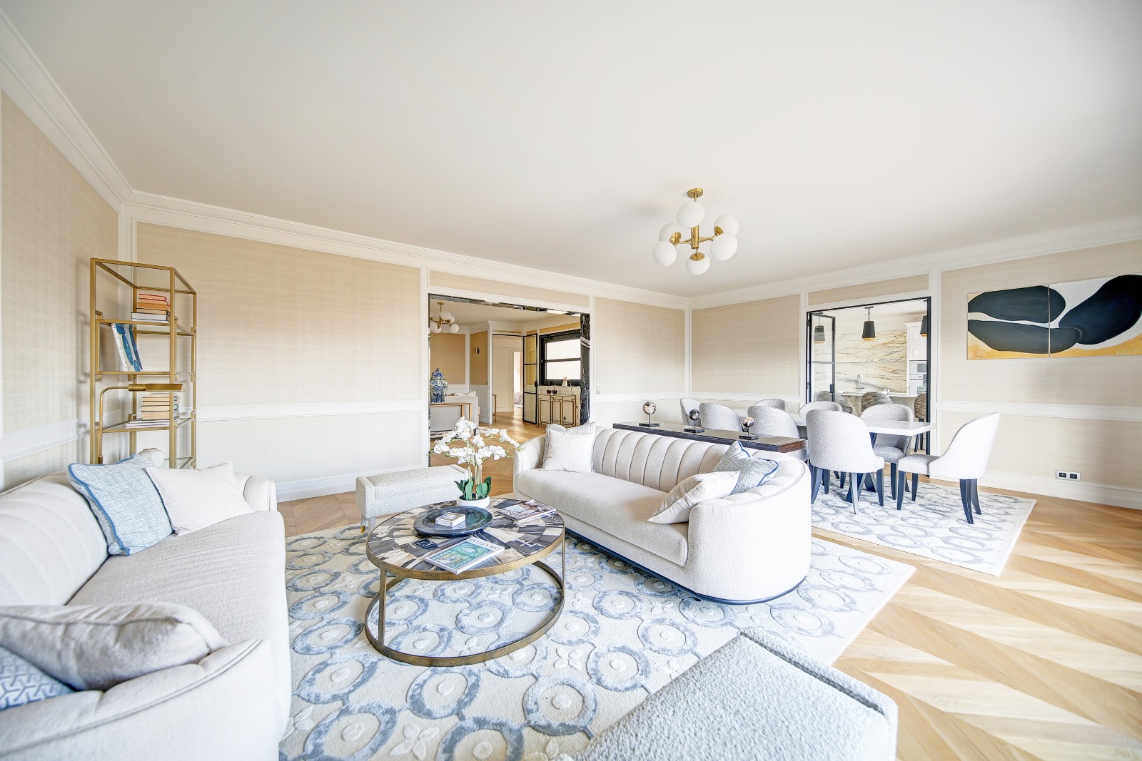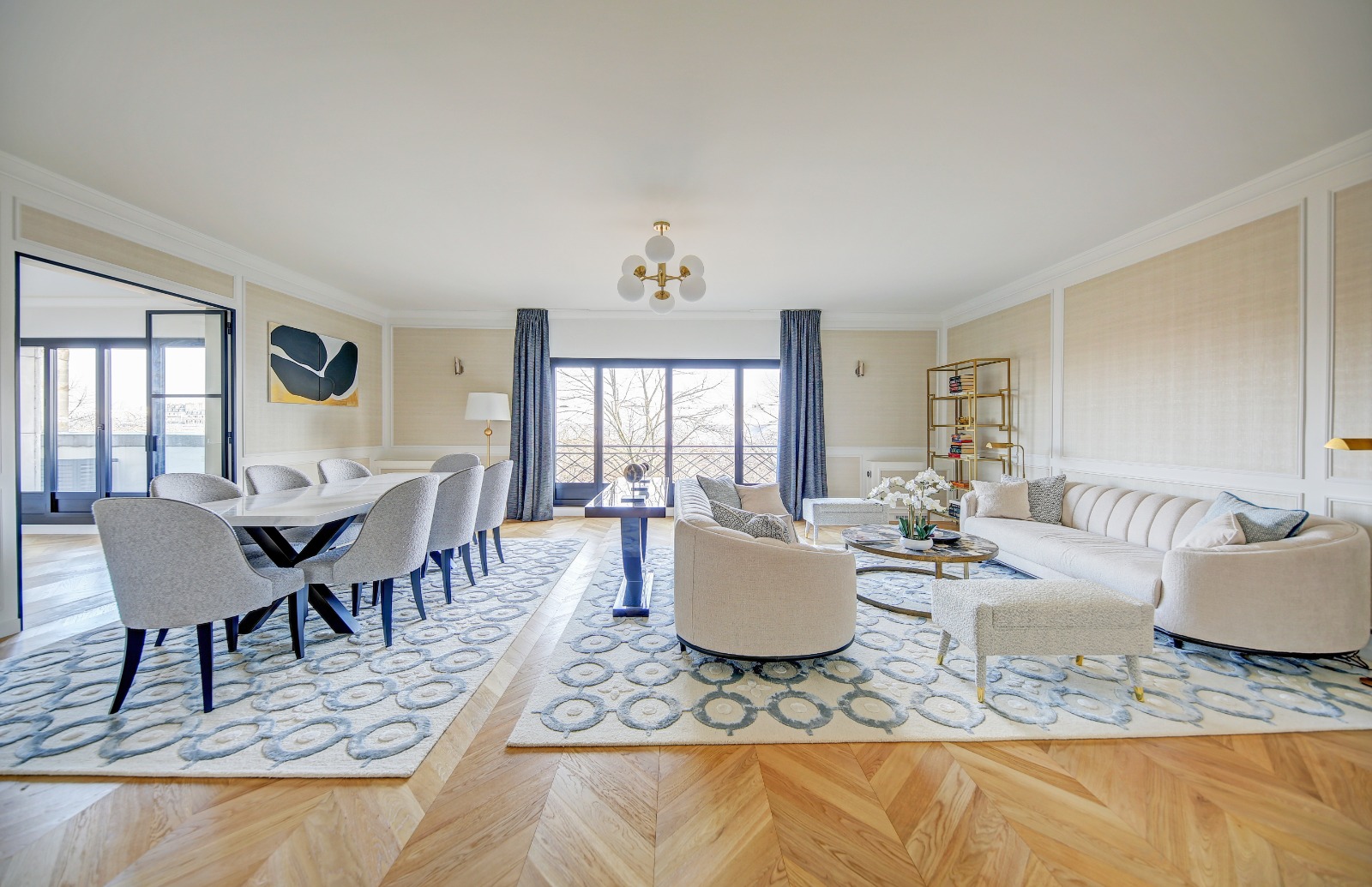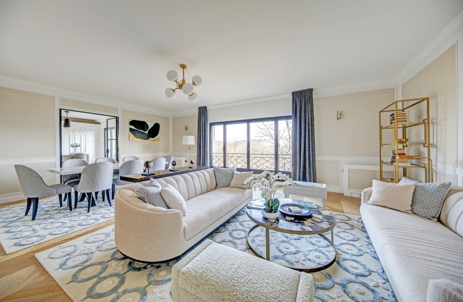 Champ de Mars - Ecole Militaire On the third floor with private elevator of a 1925 building located opposite the Champ de Mars, this exceptional 265 sqm apartment renovated by an architect in 2024 sold fully furnished offers a contemporary design with Italian marble, large bay windows, it is arranged as follows: entrance gallery, reception, dining room, a large open kitchen with island and Gaggenau equipment all offering a sublime view of the Eiffel Tower, four suites with complete bathrooms. Full air conditioning and DPE A. An exceptional living space in the heart of Paris. A laundry room, three cellars, and a parking space in the building complete the property. Possibility of acquiring in addition a 25 sqm Carrez studio in the building. Co-ownership of lots. Fees charged to the seller Information on the risks to which this property is exposed is available on the Géorisques website: www.georisques.gouv.fr.