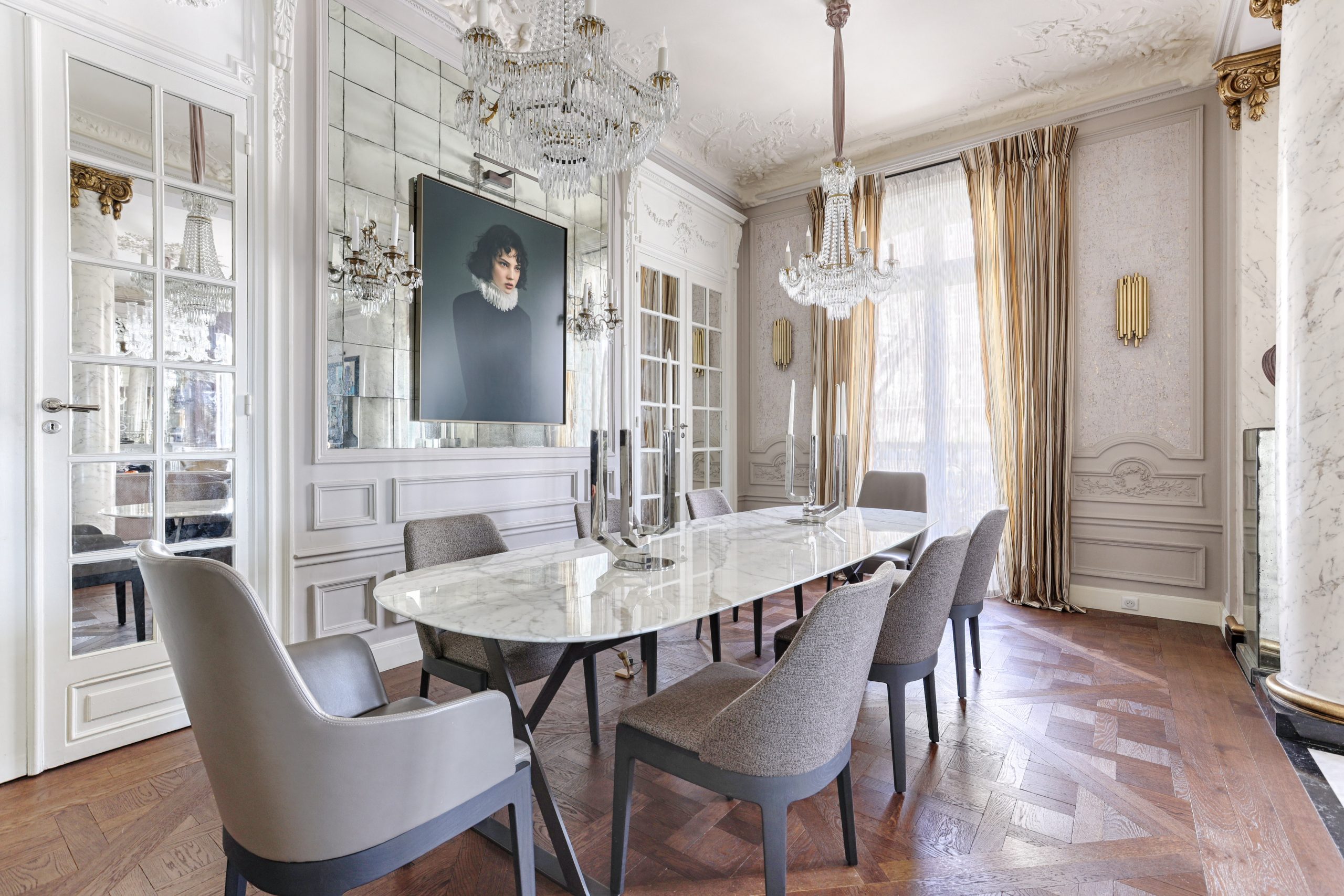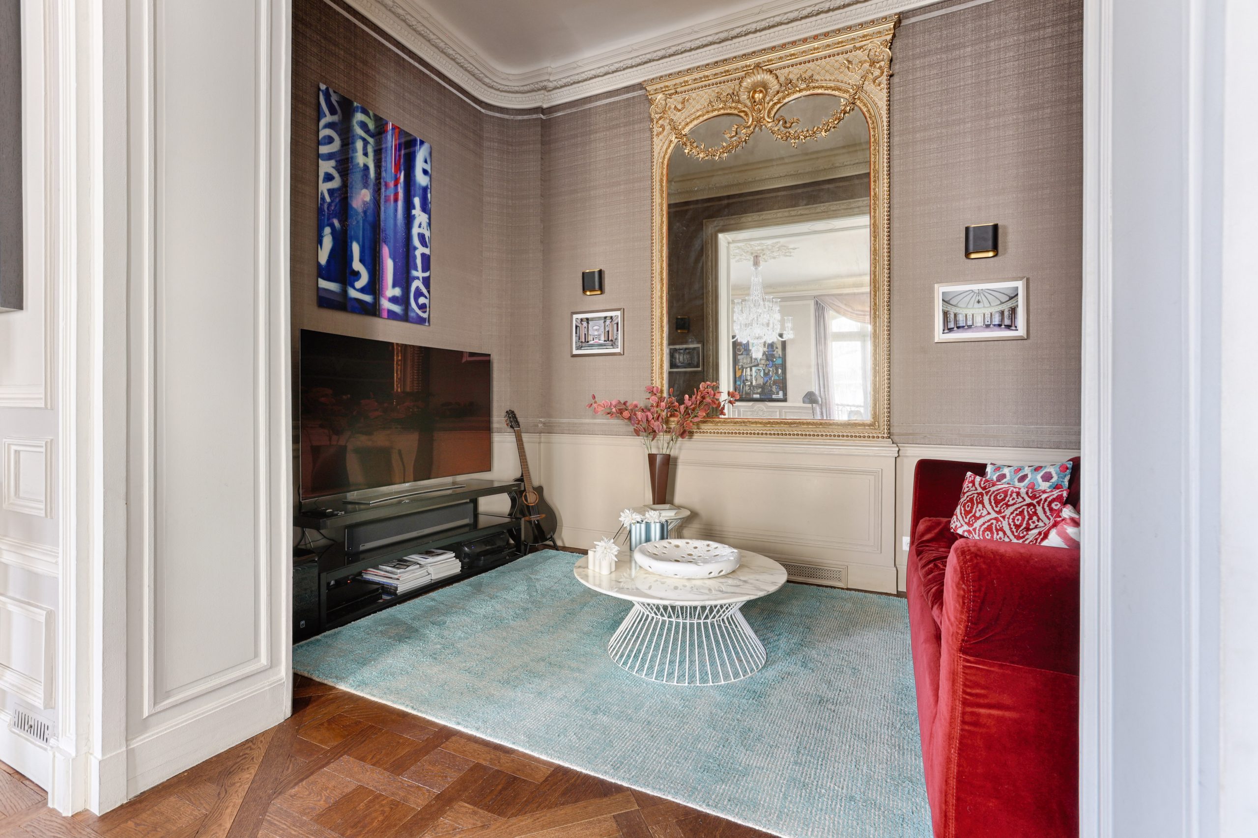 Chaillot - Iena district Located on Place de l'Alma, sumptuous 175sqm apartment located on the first floor with elevator of a Haussmannian building with caretaker was designed by a renowned architect and sold furnished. This reception apartment consists of an entrance, a reception area with dining room, TV lounge as well as a separate fitted and equipped kitchen, a master suite with dressing room and shower room with toilet, a large bedroom with its shower room and toilet as well as a guest toilet. A cellar completes this property. Co-ownership of lots Fees Included charge of the seller Information on the risks to which this property is exposed is available on the Géorisques website: www.georisques.gouv.fr