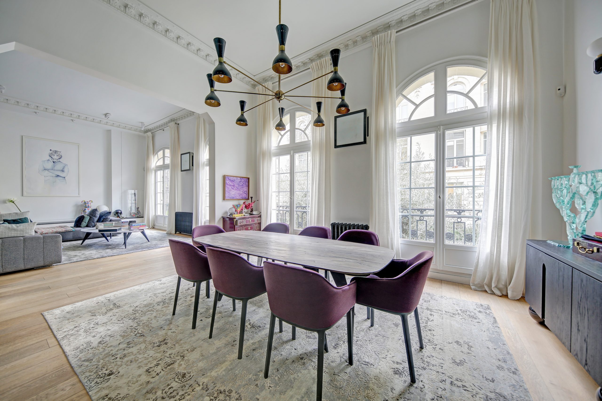 OECD/ Muette Located in the prestigious OECD district, a few steps from La Muette and the Passy shopping street, this exceptional triplex of 334 sqm (324 sqm Carrez Law) is located in a sumptuous Haussmannian private mansion with an elevator. The apartment is composed as follows: On the first floor, directly accessible by elevator, a reception area houses a double living room bathed in light, a dining room with an impressive ceiling height of four meters, and an open kitchen opening onto an 18 sqm terrace. This space is completed by a mezzanine with a shower room, ideal for entertaining in complete independence. On the upper floor, dedicated to the sleeping area, a master suite is accompanied by three other bedrooms (one of which is converted into a video lounge), dressing rooms, a bathroom and a shower room. The garden level offers high-end services: a gym with jacuzzi, a private garden of 25 sqm, a space that can be converted into a service studio with shower room, a hammam and a large dressing room. Co-ownership of 2 lots Fees payable by the seller Information on the risks to which this property is exposed is available on the Géorisques website: www.georisques.gouv.fr.